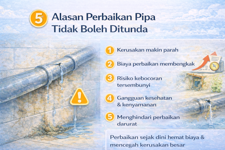 Berikut ini 5 alasan utama mengapa perbaikan pipa tidak boleh ditunda dan harus segera ditangani secara profesional.