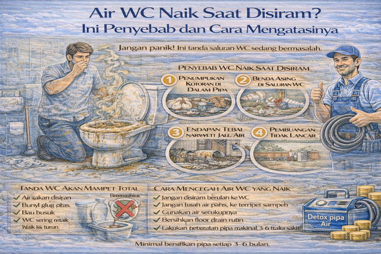 Air WC yang naik saat disiram sering membuat panik. Kondisi ini bukan hal sepele karena menandakan saluran pembuangan sudah tidak bekerja normal. Jika dibiarkan, WC bisa mampet total, meluap, dan menyebarkan bau serta kotoran ke kamar mandi.