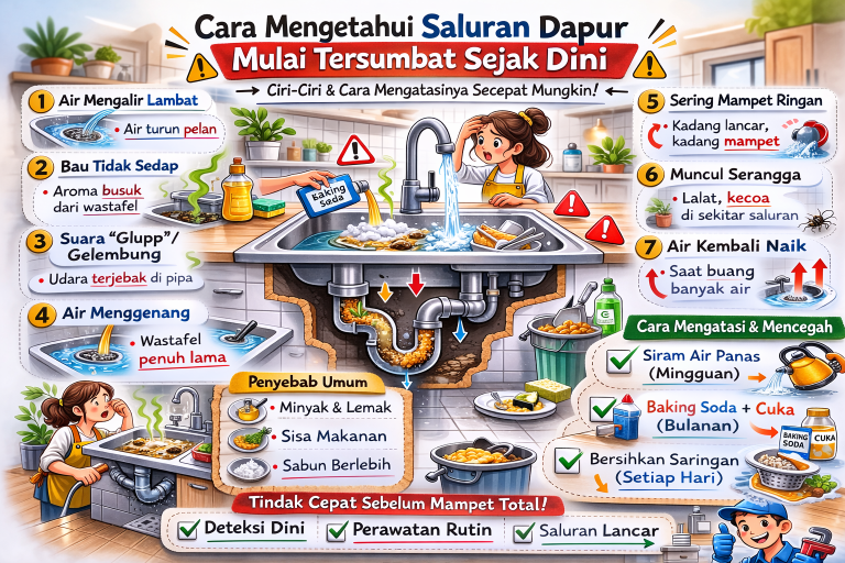 Saluran dapur yang tersumbat tidak terjadi secara tiba-tiba. Biasanya ada tanda-tanda awal yang sering diabaikan hingga akhirnya air tidak bisa mengalir sama sekali. Jika Anda dapat mengenali gejala sejak dini, masalah bisa diatasi lebih cepat tanpa perlu membongkar pipa atau mengeluarkan biaya besar.