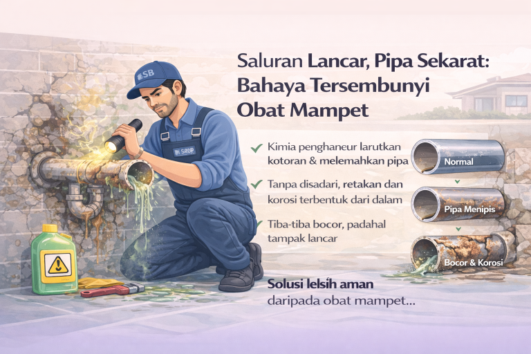 Saat saluran air di rumah mampet, banyak orang langsung memilih solusi instan: obat mampet atau cairan pelancar saluran. Hasilnya memang terlihat cepat — air kembali mengalir, WC tampak normal, wastafel tidak meluap lagi.
